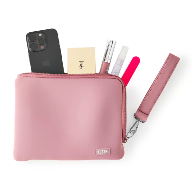 Neoprene Wristlet Clutch Mauve with Stone
